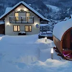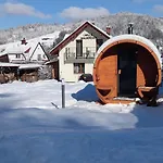Featuring a balcony and a sitting area, this Wisla property boasts media facilities Wi-Fi and a television to spend free time. Accompanied by a stone fireplace, the accommodation also includes in-room amenities like ironing facilities. The 2-bathroom villa comes with a bathroom with a tub, a walk-in shower, and a separate toilet. There are hair dryers and bath sheets for guests' comfort.